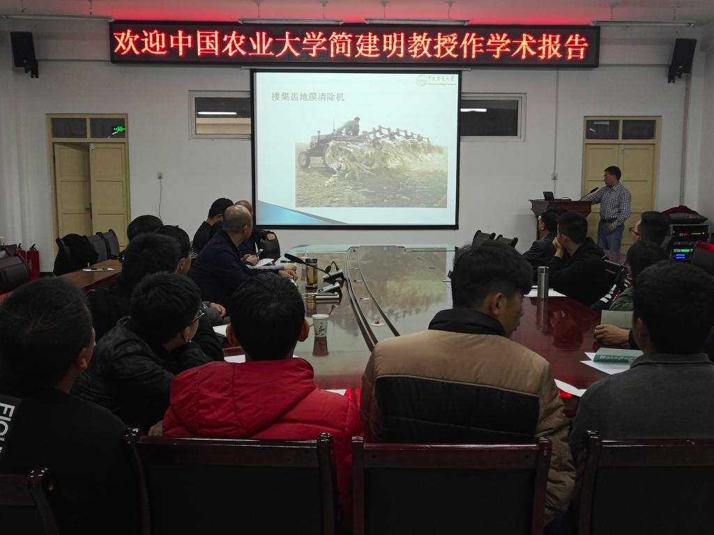 访问交流,并在工科楼229作了题为《残膜污染与机械化治理技术》的专题报告,学院院长弋晓康,副院长侯书林、张宏、龚䶮及学院相关学科教师、学生到场参加。报告会由副院长侯书林主持。