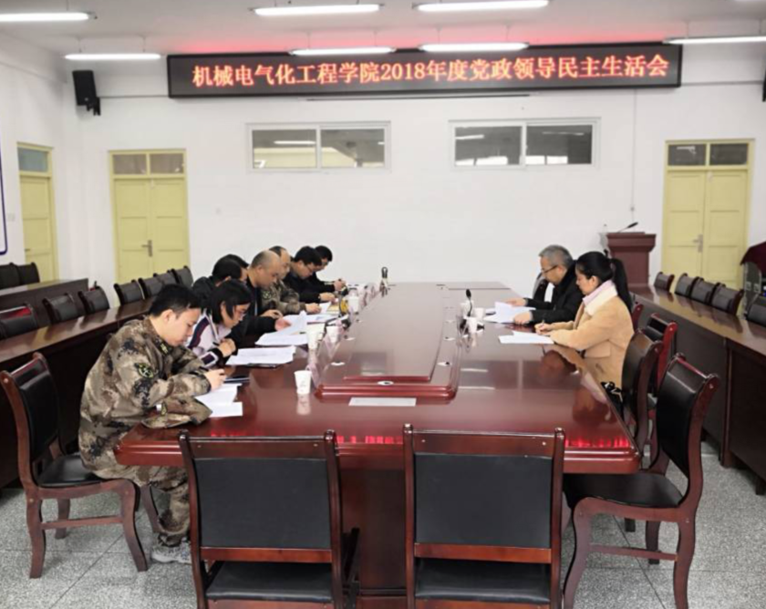 会上,弋晓康同志通报了2018年度机械电气化过程学院领导班子民主生活会准备情况,代表学院党委班子对上一年度民主生活会整改措施落实情况进行了通报,并做了班子对照检查。班子成员紧扣民主生活会主题,分别作了个人对照检查,集中开展了批评与自我批评。与会同志谈认识、找差距,摆问题、剖根源,提意见、议整改。