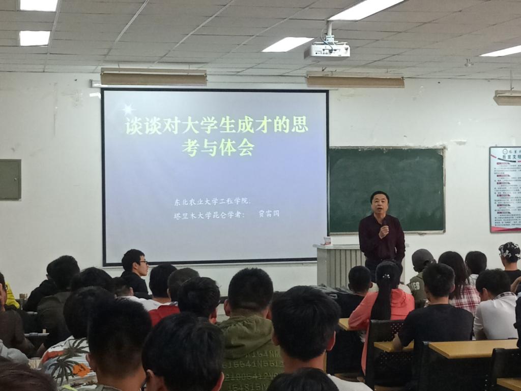 贾富国教授为学生做了关于《谈谈对大学生成才的思考与体会》的报告,通过自己如何将研究生曾勇(成人电影