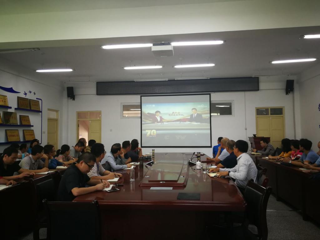 8月22日上午10:00,学院党委副书记、院长弋晓康,党委副书记胡松林,副院长王旭峰、张宏及全体在校教工在工科楼229会议室收听收看了中央电视台新闻频道播出的庆祝新中国成立70周年大型直播特别节目《壮丽70年·奋斗新时代—共和国发展成就巡礼·新疆生产建设兵团篇》直播实况。