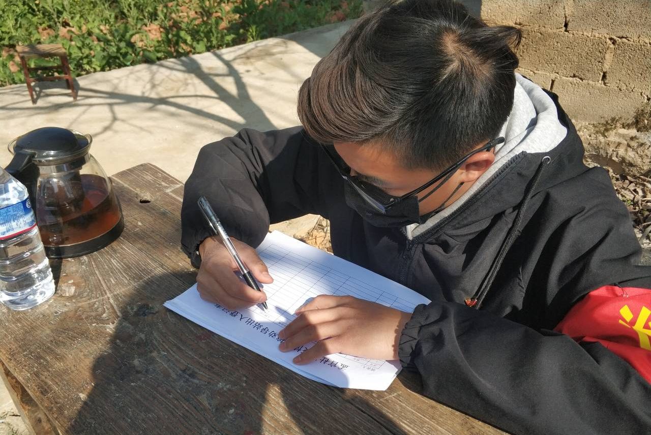 刘鑫鋆是学院参加此次疫情防控志愿者的一名学生,家乡在云南省保山市隆阳区板桥镇孟官社区,志愿服务时间是早上9点到下午6点,主要工作是在社区做宣传工作、记录人员流动详细信息、做防控卡点工作、对路过的车辆进行登记和消毒等。他说:“面对疫情防控,作为塔大学子和党员,要积极响应党中央、自治区党委、兵团党委和学校党委号召,发扬胡杨精神,从自身做起,为打赢疫情防控阻击战贡献力量!”