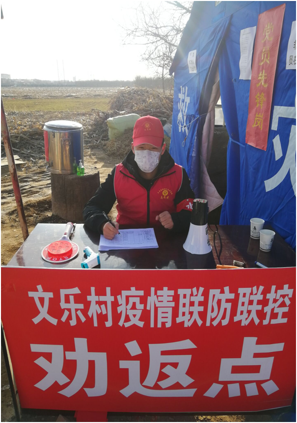 王宝强是机电工程18级一班的学生,家在甘肃省庆阳市正宁县榆林子镇文乐村四组,志愿服务时间是早上8点到下午8点,主要工作是在本村做宣传工作、记录人员流动详细信息、做防控卡点工作、对路过的车辆进行登记和消毒等。疫情发生后,他第一时间在志愿汇APP上,响应当地县、委团委号召,积极加入到防控志愿者的行列,服从当地干部指挥。现在每天主要在村口对村民做宣传教育、卡点防控、记录人员流动信息、爱心村民捐赠等工作。他说:“灾难无情,人间有情。对于此次疫情的防控,第一时间涌现出来那么多的逆行者,那么作为塔大学子,就应该继承胡杨精神,将胡杨精神带给身边的每个人。作为机电学子,更应该将机电魂传承并发扬,向人们展示机电学子的钢骨柔情。作为一名学生干部更应该想在前、做在前,为其他同学树立榜样,起到带头作用,从自身做起,为这次疫情阻击战奉献出自己的一份绵薄之力。”