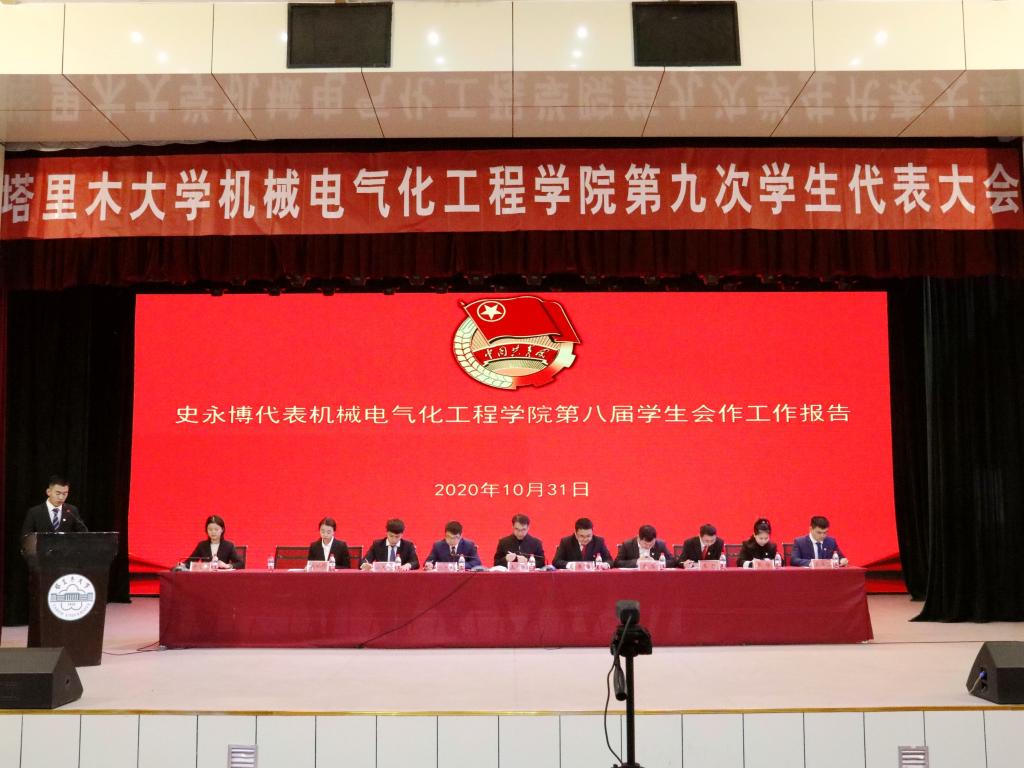 史永博代表第八届学生会向大会作了题为《不忘初心使命 锐意改革进取 团结带领广大同学为建设兵团特点南疆特色高水平大学贡献青春力量》的报告,对学院学生会过去一年的工作进行了总结,并期望学院新一届学生会要全心全意为人民服务,围绕学院中心工作,在举办各种学生活动中增强学生的凝聚力,提高同学们的综合素质,增强同学们的实践能力。