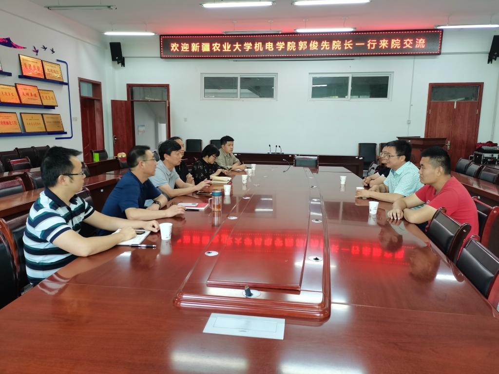 。郭俊先院长对机电院目前教学改革和实验室建设给予了充分肯定,同时他介绍了新疆农业大学机电工程学院办学历史、师资队伍、办学特色、发展远景等有关情况。随后张有强对学院研究生教育和科研工作进行了交流。