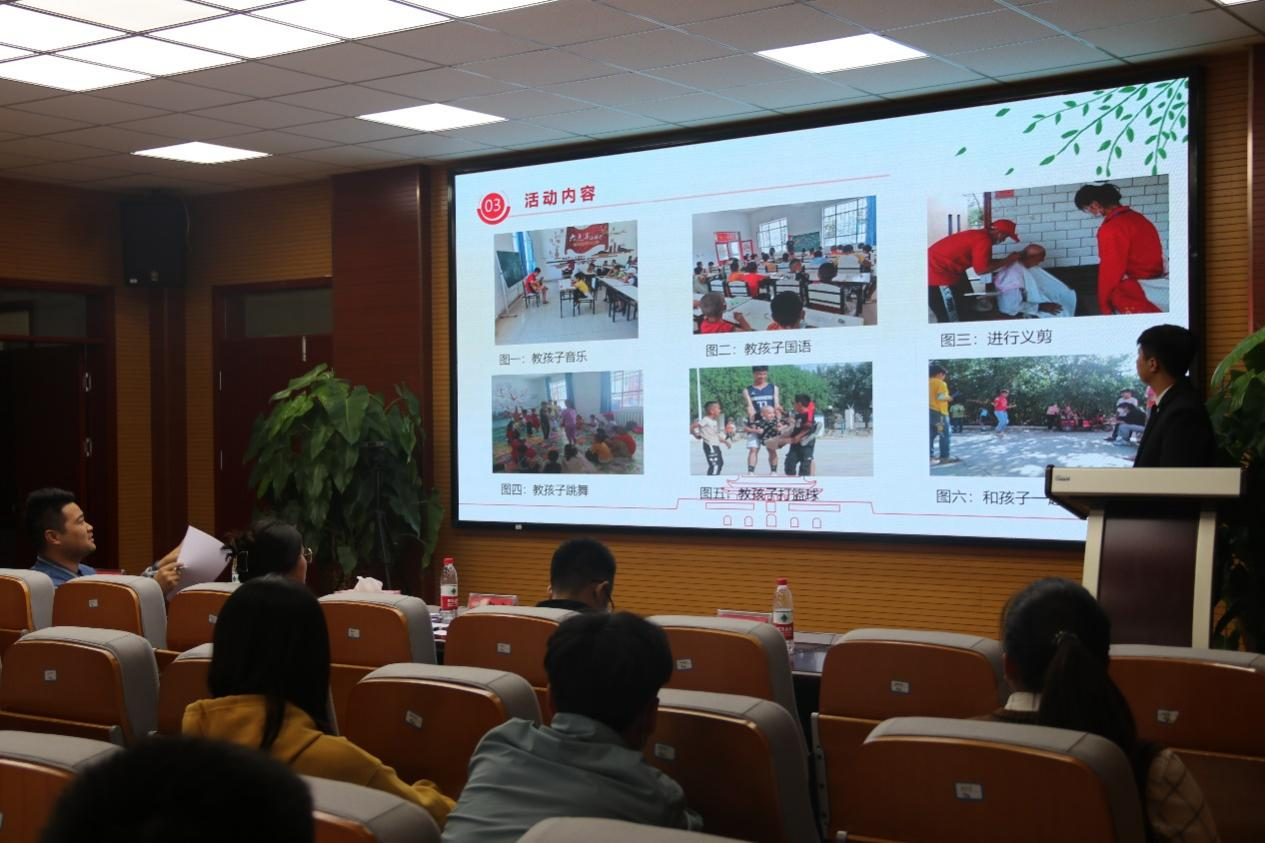 10月16日下午,学院举行第三届青年志愿者服务项目大赛答辩会在工科楼318会议室举行。来自志愿团和志愿组织的8个志愿项目经过项目申报、评选委员会评选两个环节后,从众多参赛项目中脱颖而出,进入院赛的展示与答辩环节。出席此次大赛的评委老师分别有:生命科学学院团委副书记石建敏、信息工程学院辅导员成鹏、学院辅导员鲁宁宁、辅导员袁伟。