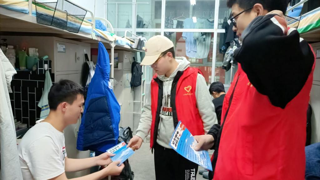 上午,支部党员带领积极分子在食堂门前进行宣传。晚上,支部同志到宿舍内进行宣讲。大家结合自身专业优势,通过发放宣传单、播放安全急救知识宣传录音、向路过的同学讲述用电安全等方式式,向学生宣传用电安全和触电后的急救知识。