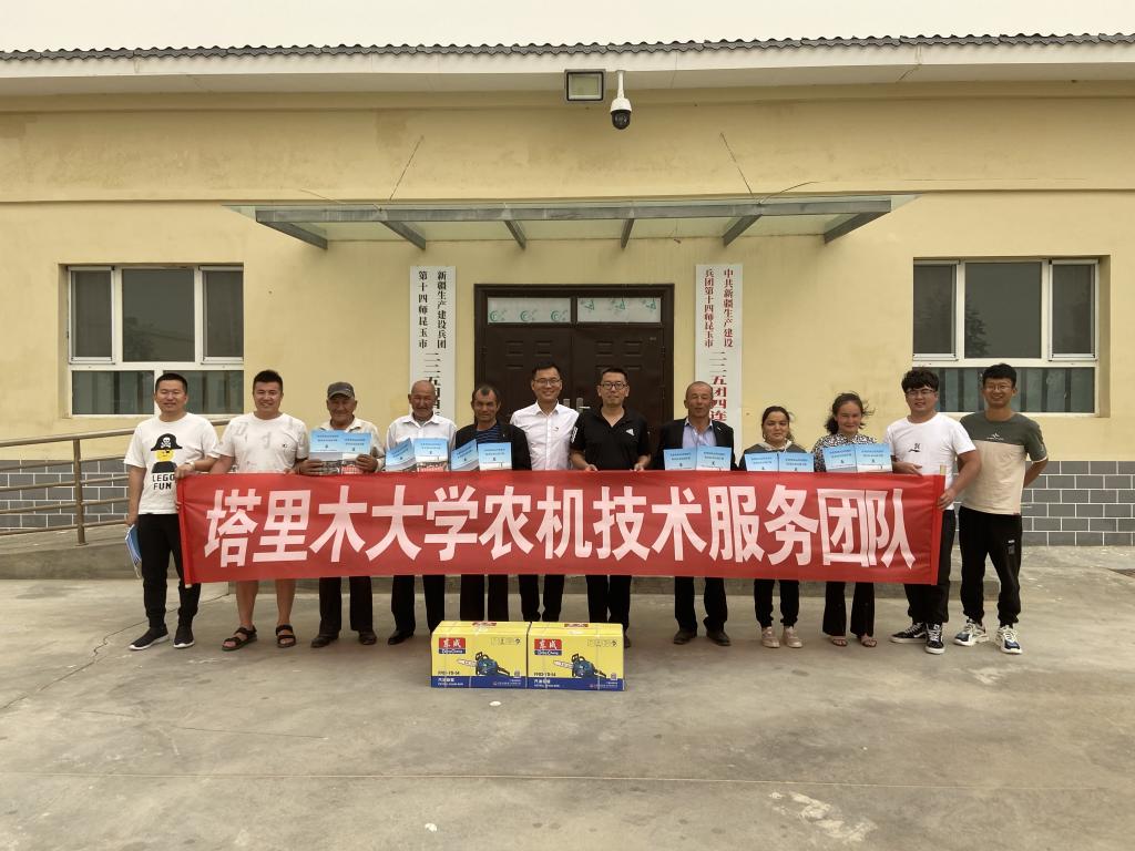 服务团队走近连队居民家中,了解他们的经济和生活情况,为他们一对一讲解农机检修和安全驾驶知识,为提高大家农机使用安全意识,还进行了农机安全事故警示宣传教育。并服务团队还为连队赠送了《农业装备运用及维护保养技术培训手册》和2台油锯。