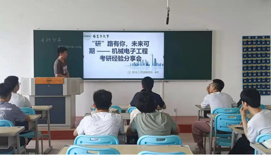 新校区B座304举行考研分享会,特邀学院2019级机械电子工程专业学长张亚勋、陈洋、马新、倪硕进行了经验分享。