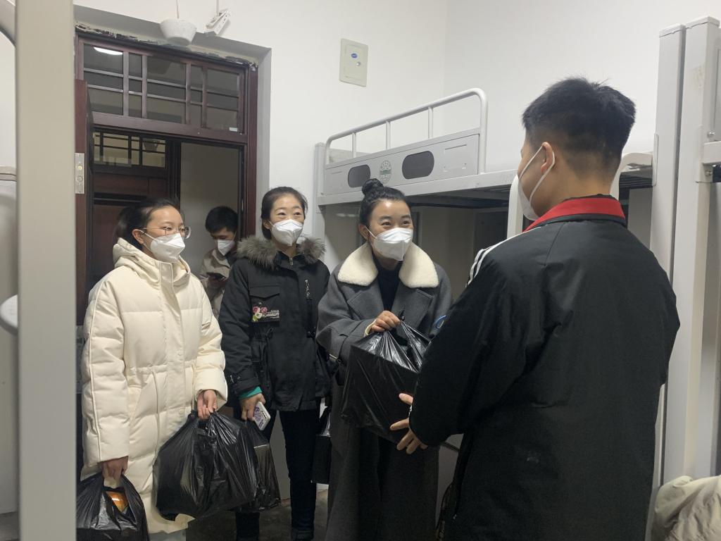支部教师进宿舍询问交友学生近期生活状况,叮嘱大家特殊时期做好个人防护的同时注意防寒保暖,有问题及时联系交友教师,着重看望家庭经济困难及考研复习学生,以不同的角度去关心关爱。