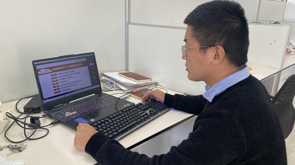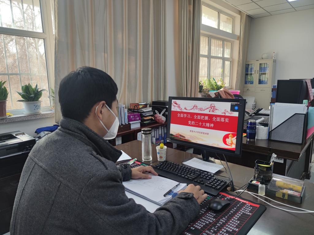 12月13日下午,学院党委宣讲团成员、副院长张辉以线上腾讯会议的方式为实验中心教工党支部作了学习贯彻党的二十大精神宣讲报告会,实验中心教工党支部全体教工聆听了此次报告。