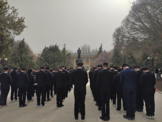 4月5日上午,在巍然屹立的王震将军铜像前,机电院全体学生党支部党员满怀敬仰、沉痛悼念英雄先烈。