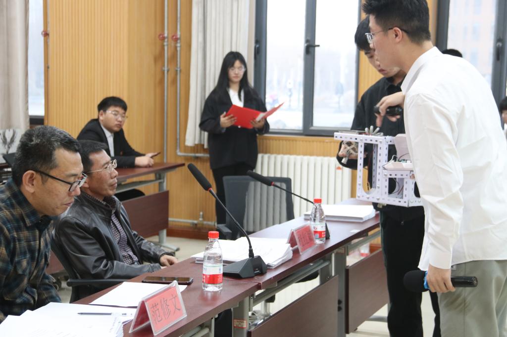 园艺与林学学院设施工程系主任杜红斌、工程实验室副主任王新建、信息工程学院团委书记潘莎莎、水利与建筑工程学院团委副书记李同玺、农业工程系党总支书记范修文、兵团大学生创新实验室主任刘媛媛担任专家评委。答辩会采取“3+3”模式,即参赛者进行3分钟项目讲解和3分钟评委专家提问。