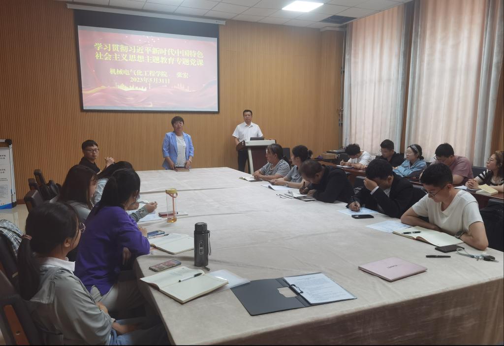 为深入学习贯彻党的二十大精神,按照学院党委部署安排,5月31日,学院党委副书记、院长张宏为基础与纺织教师党支部和研究生党支部作学习贯彻习近平新时代中国特色社会主义思想主题教育专题党课,党课由基础与纺织教师党支部书记孔德国主持,在东扩区D102举行。