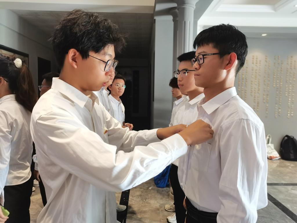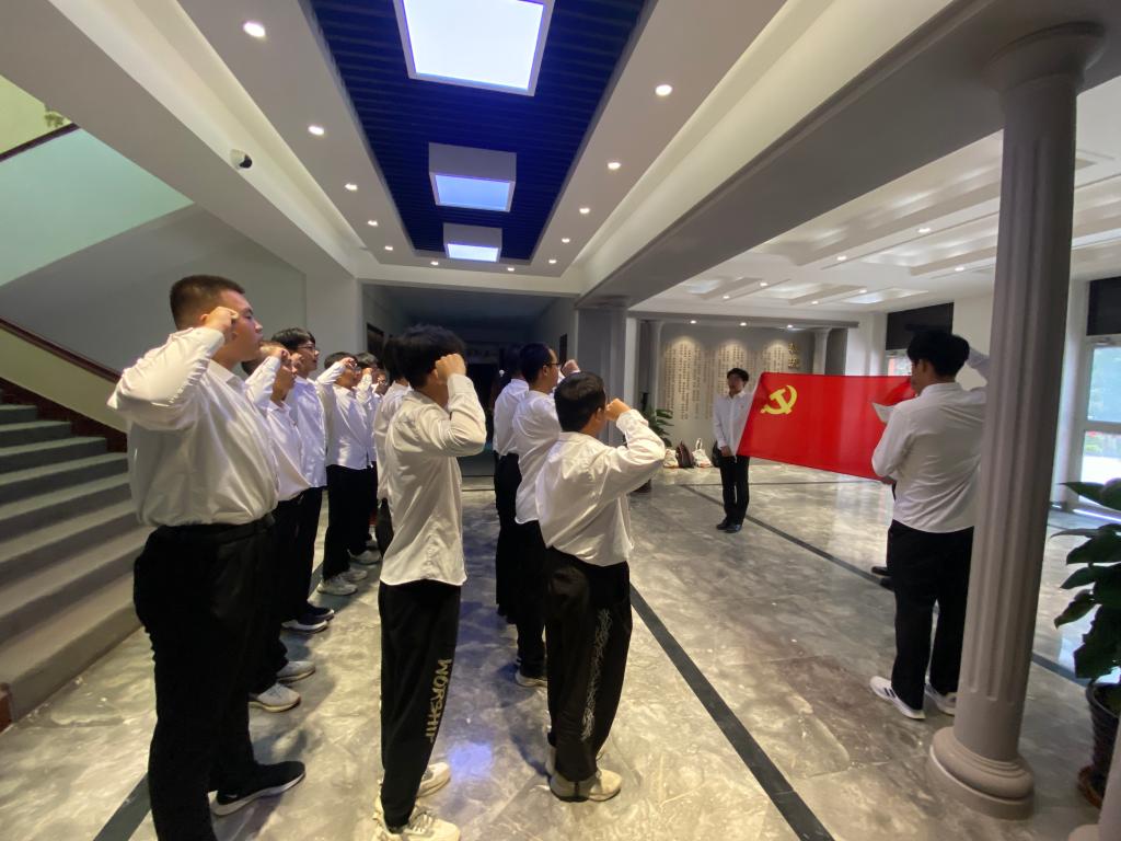在党旗下,支部党员同志们为2023年新发展预备党员一对一佩戴党徽,胸前的党徽,不仅是一种身份的象征,更是一种责任、担当和使命。吴量带领全体党员面向党旗庄严宣誓。