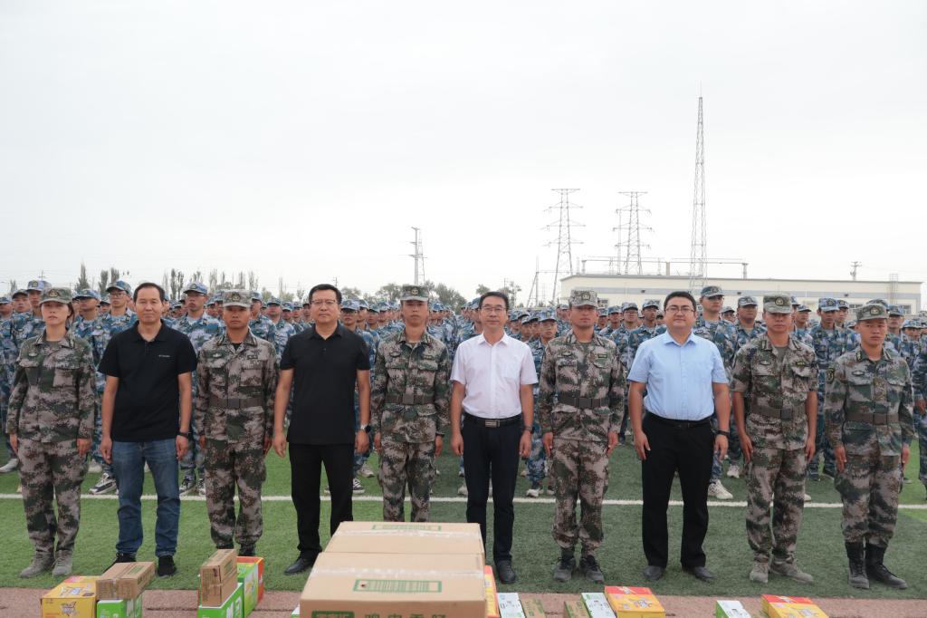 为鼓励2022级学生坚持完成军训任务,8月28日上午,学院党委书记王旭峰、院长张宏、党委副书记李勇、副院长张有强和学院全体辅导员以及各参训班主任来到东扩区一期训练场地,代表学院看望军训学生、带训教官及一线保障队伍。