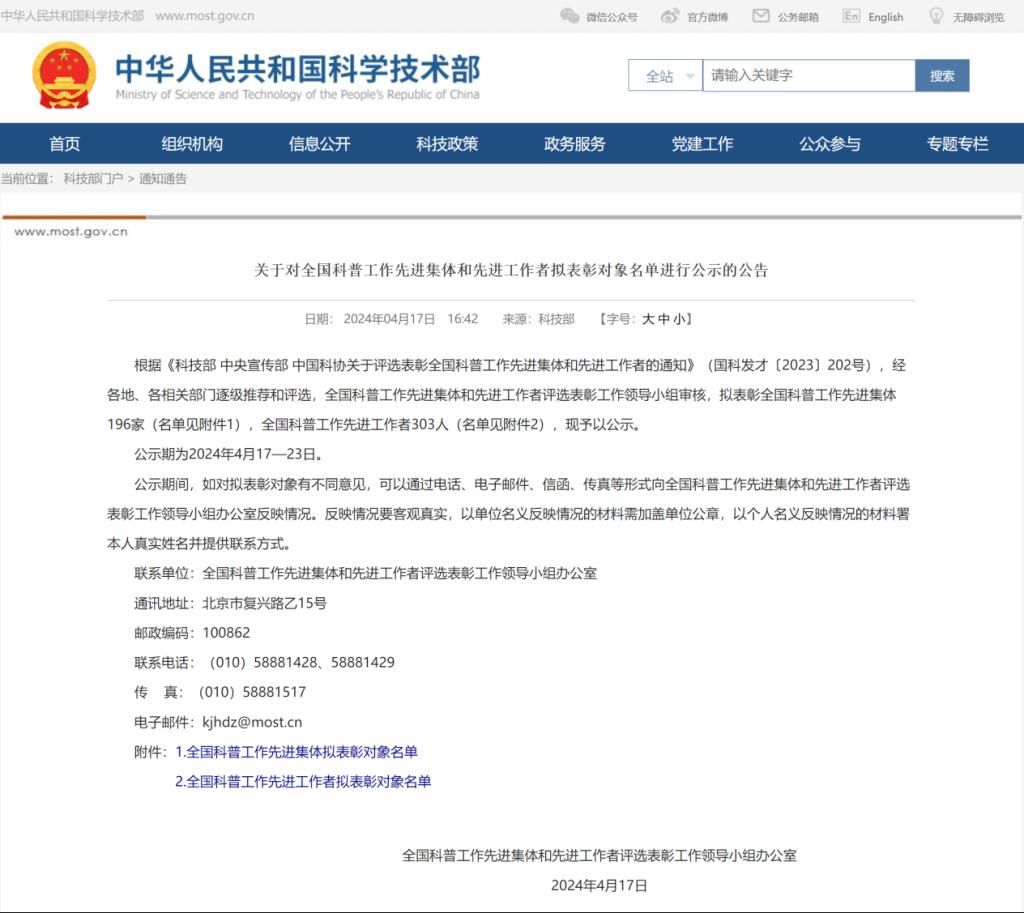 近日,科技部发布《关于对全国科普工作先进集体和先进工作者拟表彰对象名单进行公示的公告》,拟表彰成人电影