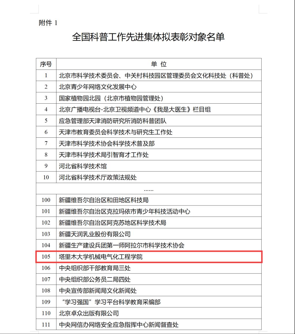 下一步,学院以此次荣获“全国科普工作先进集体”为契机,不忘初心、牢记使命,进一步弘扬科学精神,普及科学知识,加强科普能力建设,为加快建设兵团特点南疆特色一流大学建设贡献新的力量。
