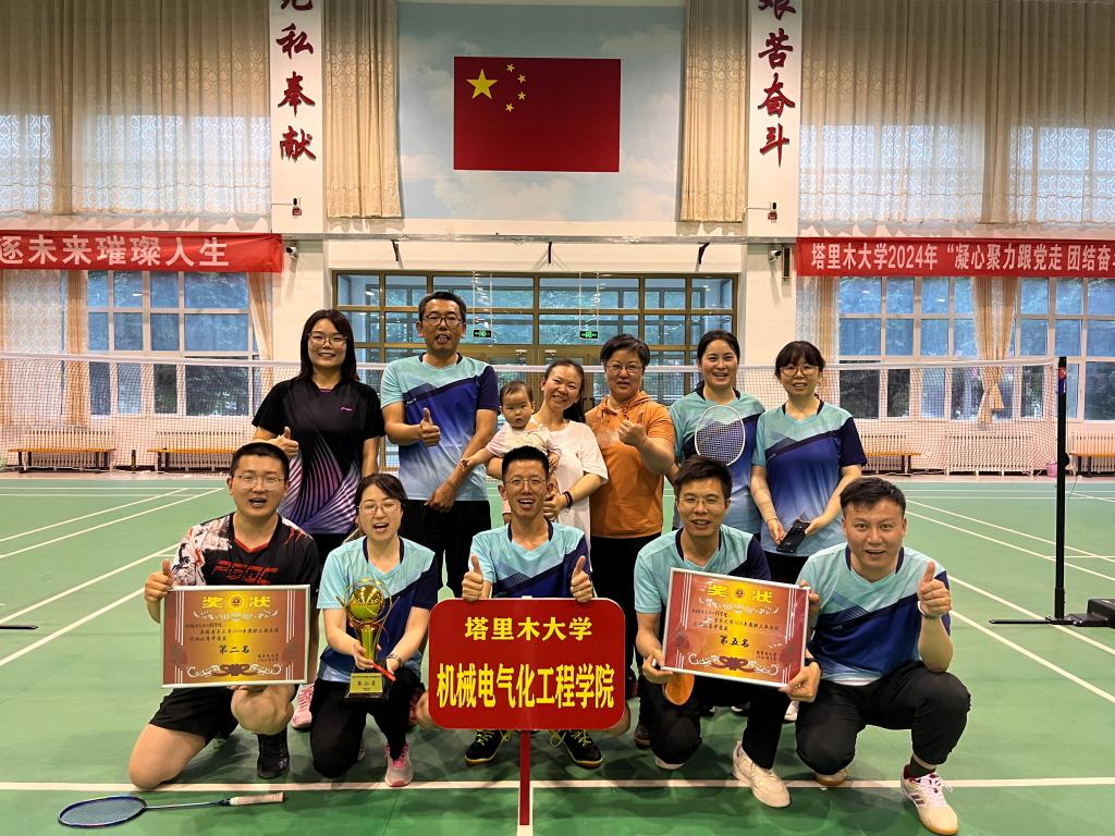 为推动全民体育健身活动的开展,丰富教职工的业余文化生活,增强身体素质、提高健康水平,加强交流合作,以健康的身体状态和昂扬的精神面貌迎接中华人民共和国成立75周年,兵团成立70周年,5月11日-5月12日,学校工会在乒羽馆举办了2024年“凝心聚力跟党走,团结奋斗新征程”教职工乒乓球、羽毛球比赛。学院代表队获得了羽毛球团体第二名、乒乓球团体第五名的佳绩。