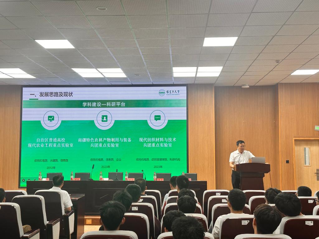 王旭峰教授以“使命担当作为”为题,要求全体研究生要志存高远,培养良好的思想道德素养,要发挥学习的主动性,要脚踏实地,培养出色的科研能力,要担当民族振兴和国家富强的使命,唯有敢担当善作为,方能坚守初心使命,为学院更好的发展,为加快推进建设兵团特点南疆特色一流大学建设贡献力量。