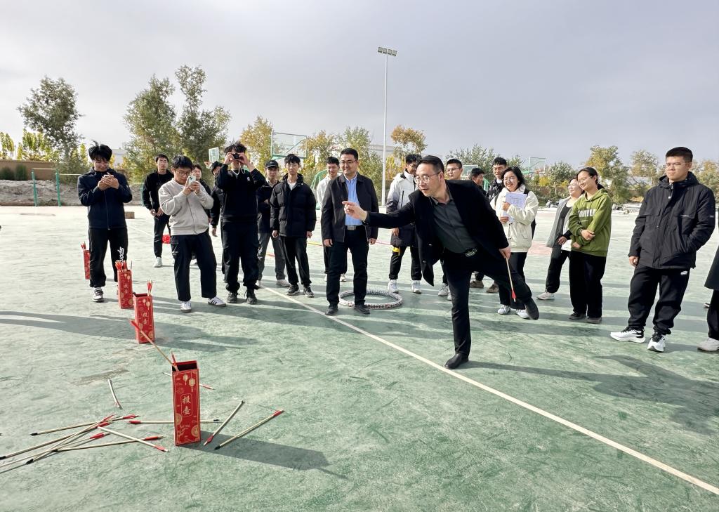 这次主题活动,以游戏为载体,将红色教育与娱乐活动完美结合。办公室教工党支部的党员们与学生们在游戏中拉近了距离,共同感受着团队合作的魅力。大家在欢声笑语中,深刻体会到了“党旗映天山”的深刻内涵。通过投壶等游戏,培养了大家的耐心与专注;两人三足和乒乓球接力则强调了团结协作的重要性。