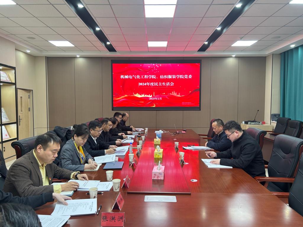 党委、纺织服装学院党委联合召开2024年度民主生活会。学校党委常委、统战部部长高庆华到会指导。学院党委书记王旭峰同志主持会议。