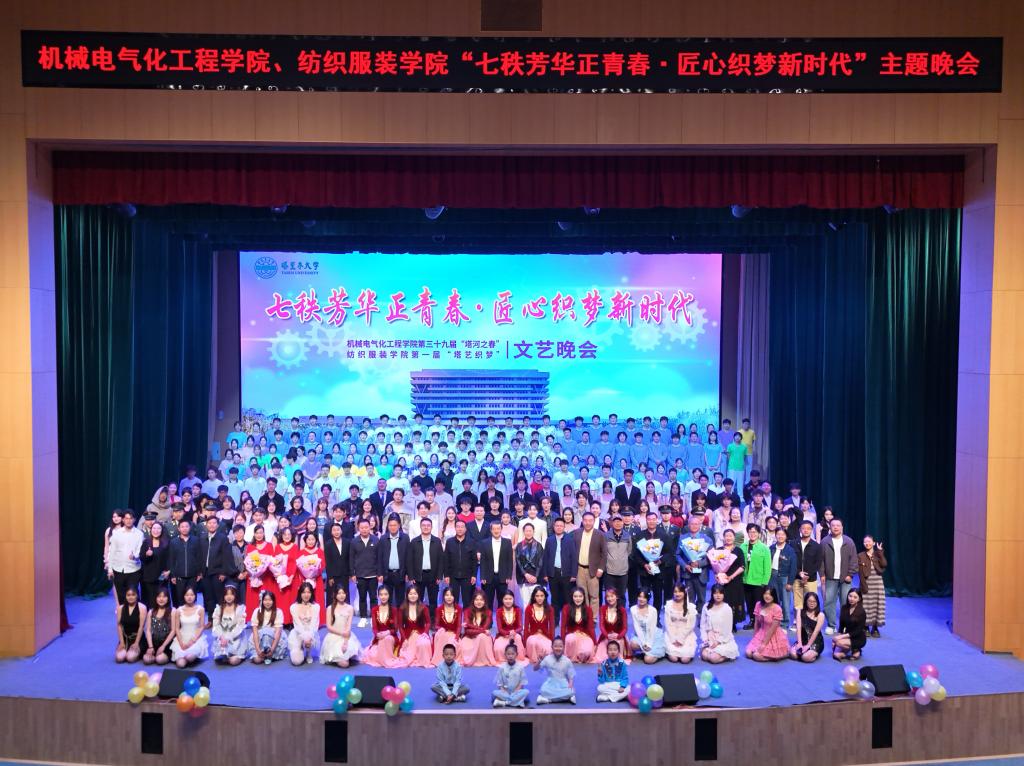 、纺织服装学院联合举办的“七秩芳华正青春·匠心织梦新时代”主题晚会在新校区一期B5报告厅举行。党委常委、副校长汤智辉,学院领导,师生代表800余名齐聚一堂,共同观看这场视听盛宴。