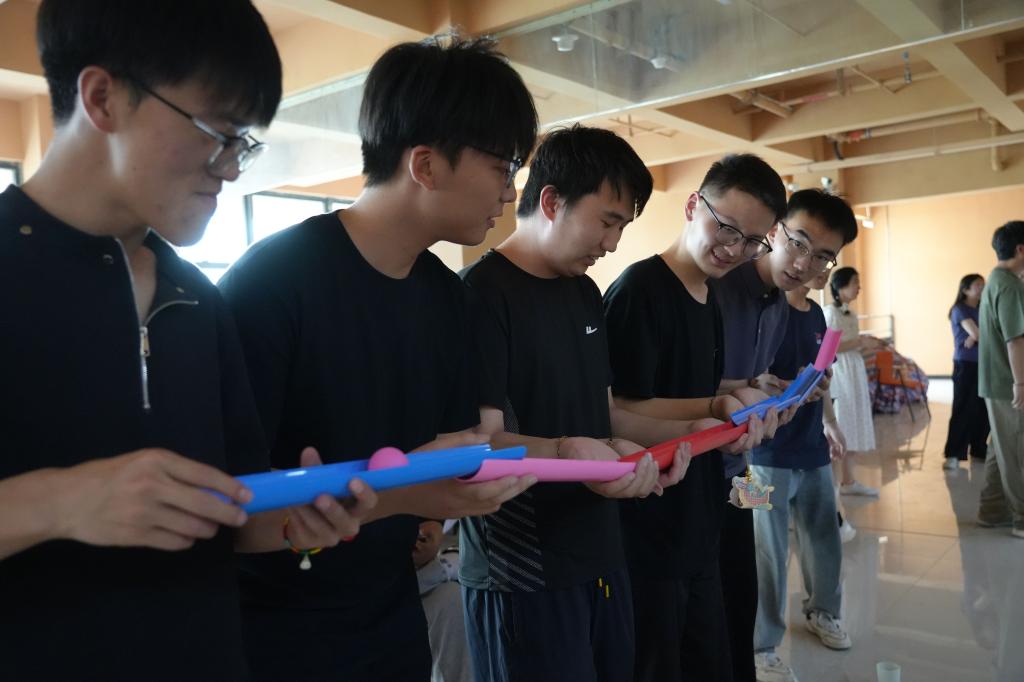 活动设置的三大游戏环节成为凝聚团队力量的核心载体。在党建知识问答中,“铸牢中华民族共同体意识”“新时代党的民族工作主线”等题目引发抢答热潮,参与者在思维碰撞中强化理论素养;“珠行万里”游戏里,10人小组手持槽板协作传递乒乓球,欢呼声中展现出精密配合的团队精神;投壶体验作为传统民俗项目,各组队员在投掷箭矢入壶的限时挑战中展现出默契协作能力。农业工程系党总支准备的钥匙扣、书签等纪念品,既作为活动奖励,也成为民族团结的实物见证。
