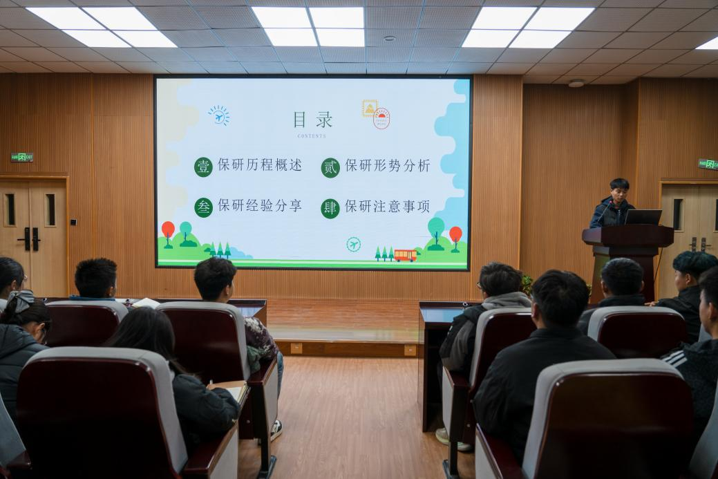 交流会上,房英乾同学结合自身学习经历,从专业学习方法、科研项目参与、时间管理技巧三个方面展开分享。他说,扎实的专业基础是个人发展的核心要素,鼓励同学们主动深入钻研专业知识,积极参与学科竞赛与科研实践活动,不断提升个人创新能力和问题解决能力。秦建宇同学则围绕自身保研备考历程,详尽地阐述了申请材料准备、面试技巧及自己在保研道路上的宝贵经验和深刻感悟,为有保研意向的同学提供了明确且实用的行动指南。