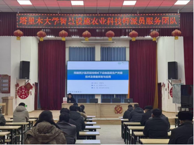 谭占明则重点围绕“设施蔬菜高效栽培”作专题报告,从品种选择、育苗与定植、水肥一体化管理、温室环境调控、病虫害绿色防控等方面系统讲解高产优质栽培要点,并结合44团当地土壤与气候条件,对茬口安排、模式配套和生产管理细节提出针对性建议。