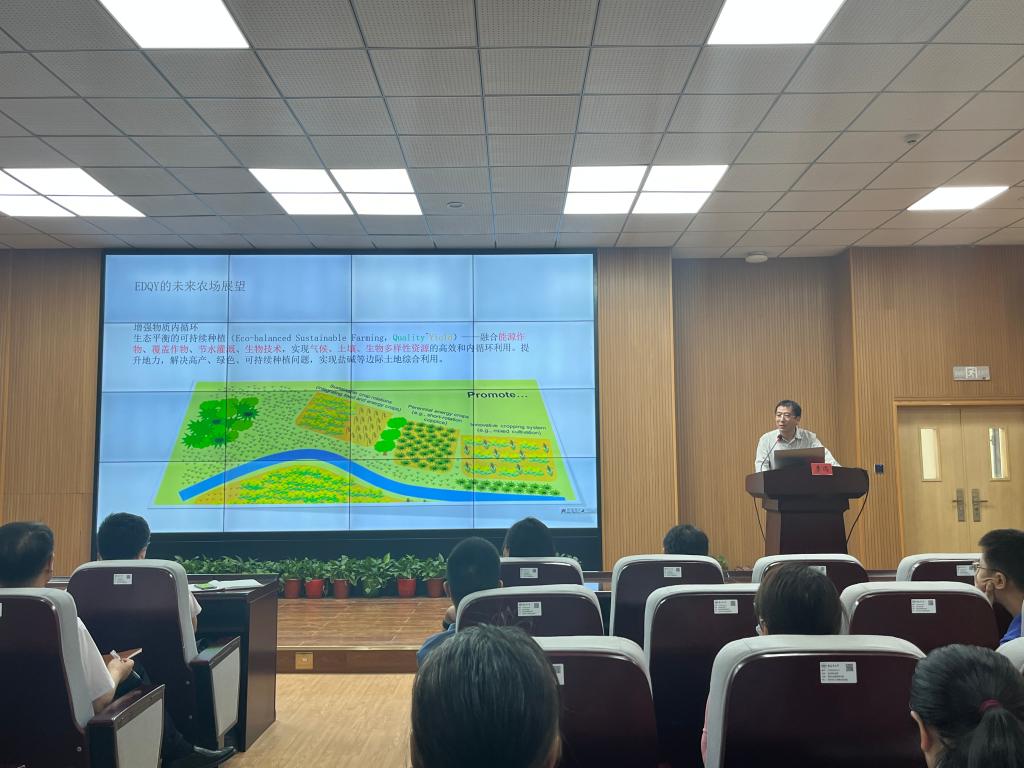 李迅专家的报告内容丰富、视角广泛、立意高远,李迅专家先以国外土壤污染和退化、气候变化导致生态系统循环不确定性加剧代表,从而引出新疆农业数字化革命必要性和多重趋势的机遇,例如以增强农田生态系统的韧性、采用多样化的种植方式、加强农业自动化、通过生物多样性的维护来保持生态系统的稳定性等方式将农业与生态系统有机结合,最后对EDQY未来农场进行展望,同时与教师进行了深入互动