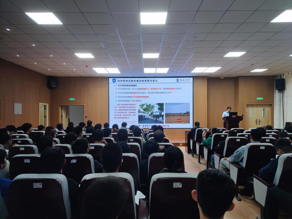师生作了题为《田间育种试验机械化研发进展与展望》的专题讲座。机电院师生代表100多人听取了讲座。讲座由学院院长张宏主持,在学院D109会议室举行。
