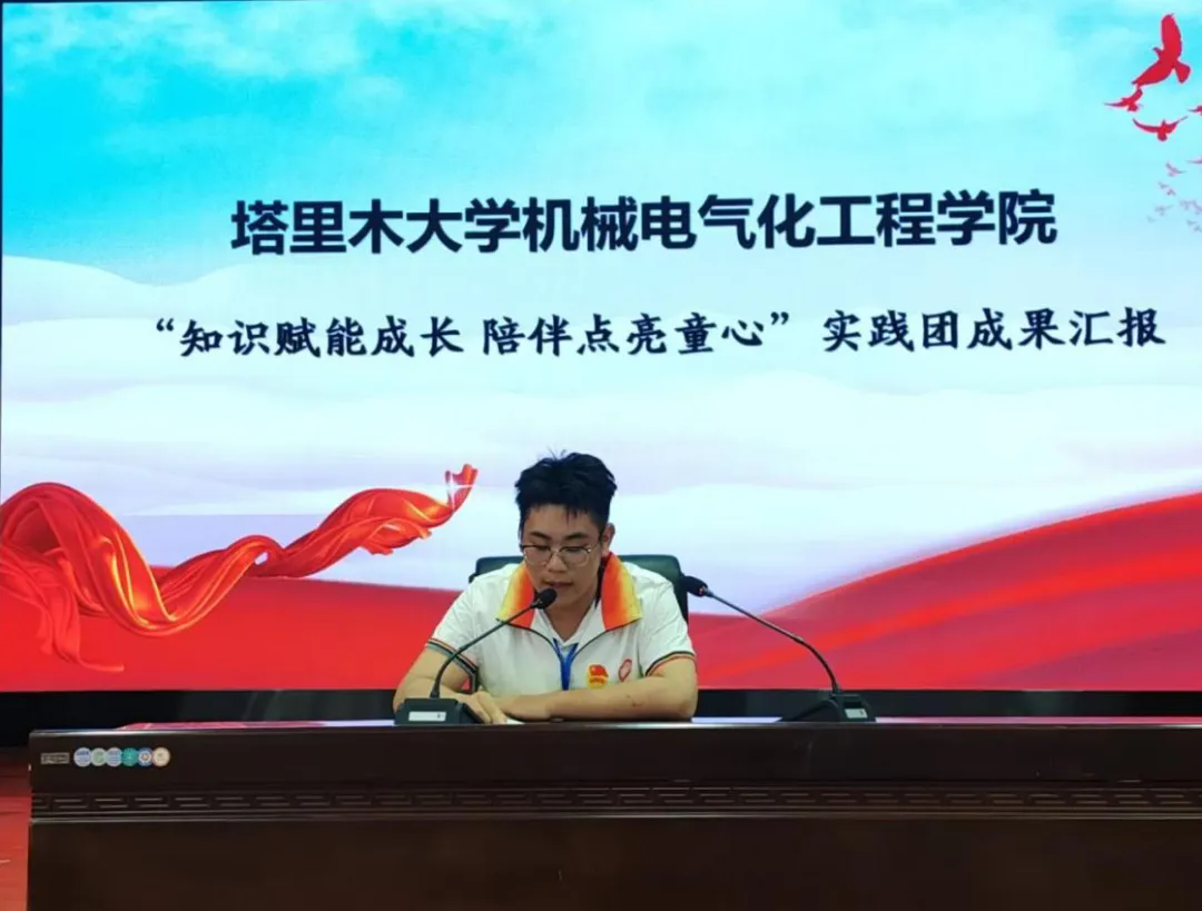 实践队队长焦智宇代表团队汇报了实践成果,并承诺将继续以实际行动助力基层教育。