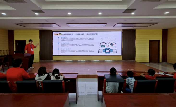 实践队成员化身为科技讲解员,用通俗易懂的语言和趣味互动模型,向孩子们揭示传感器在现代化农田中的关键作用。通过模拟装置,孩子们了解 “光照传感器” 如何帮助农作物获取适宜光照,还借助简易模型体验了传感器触发自动灌溉的奇妙过程。在队员们的演示与孩子们的触摸观察中,抽象的科技概念变得清晰可感,智慧农业的种子也悄然播撒。